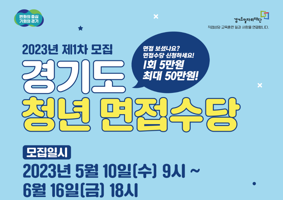 경기도 청년들의 구직활동을 지원하고자 면접을 볼 때마다 면접비를 지원해 주는 <2023년 경기도 청년 면접수당>을 시행한다고 합니다.